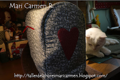 con tela a cuadros alrededor como si fuera paspartús, y lo he enmarcado yo misma,